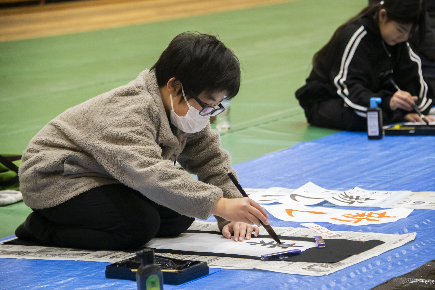 2025年1月5日(日)に、神栖市の「かみす防災アリーナ」で書道家・岩井そうせつ先生の「書道パフォーマンス」と「書初め教室」が開催されました。当日はお天気に恵まれ、10名の小学生の皆さんと多くの保護者の方々などが参加しました。
