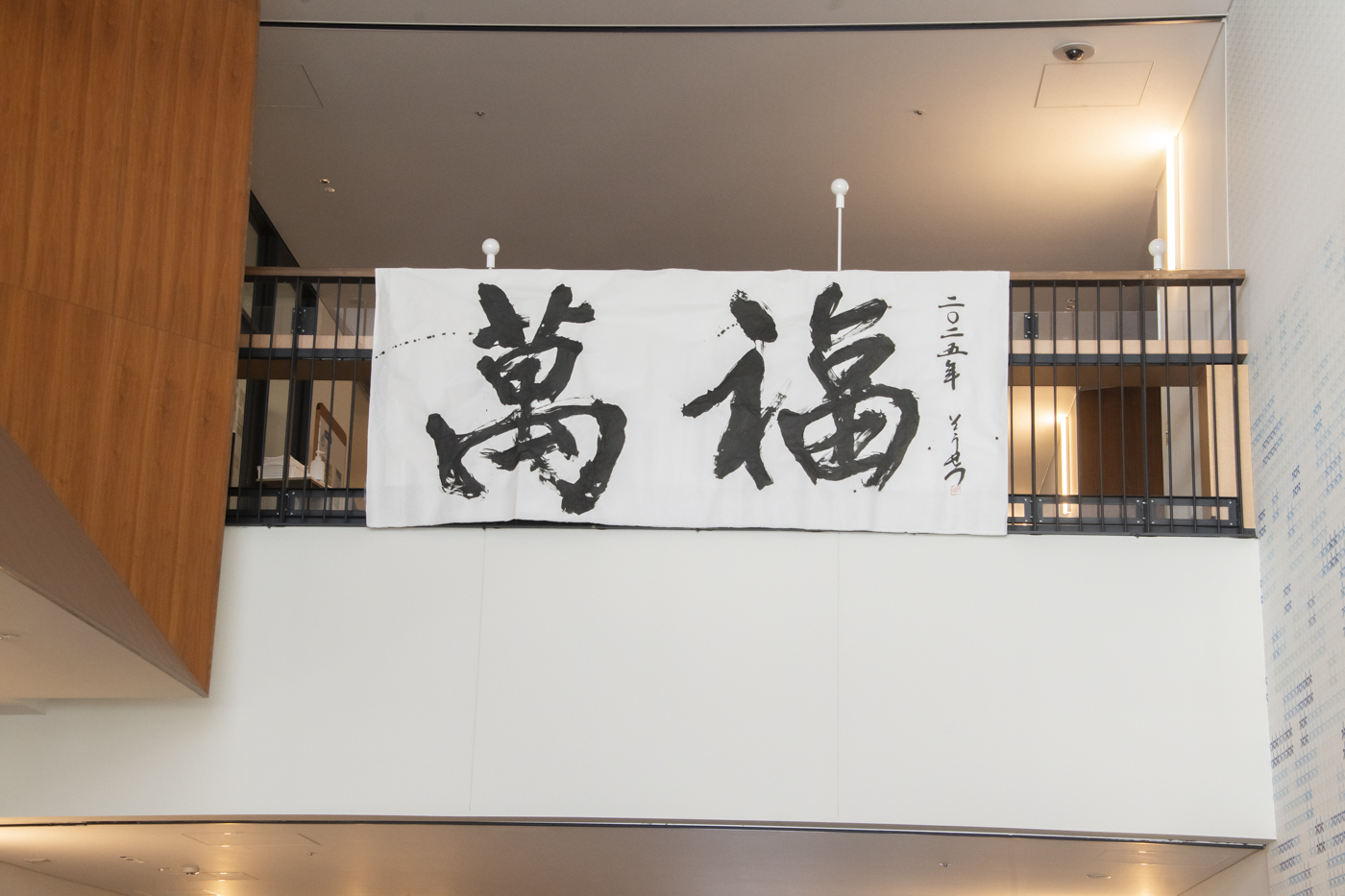 最後に、参加者の皆さんが書いた書と一緒に記念撮影をしました。皆さん、冬休みの書初めの宿題は書けたかな?
