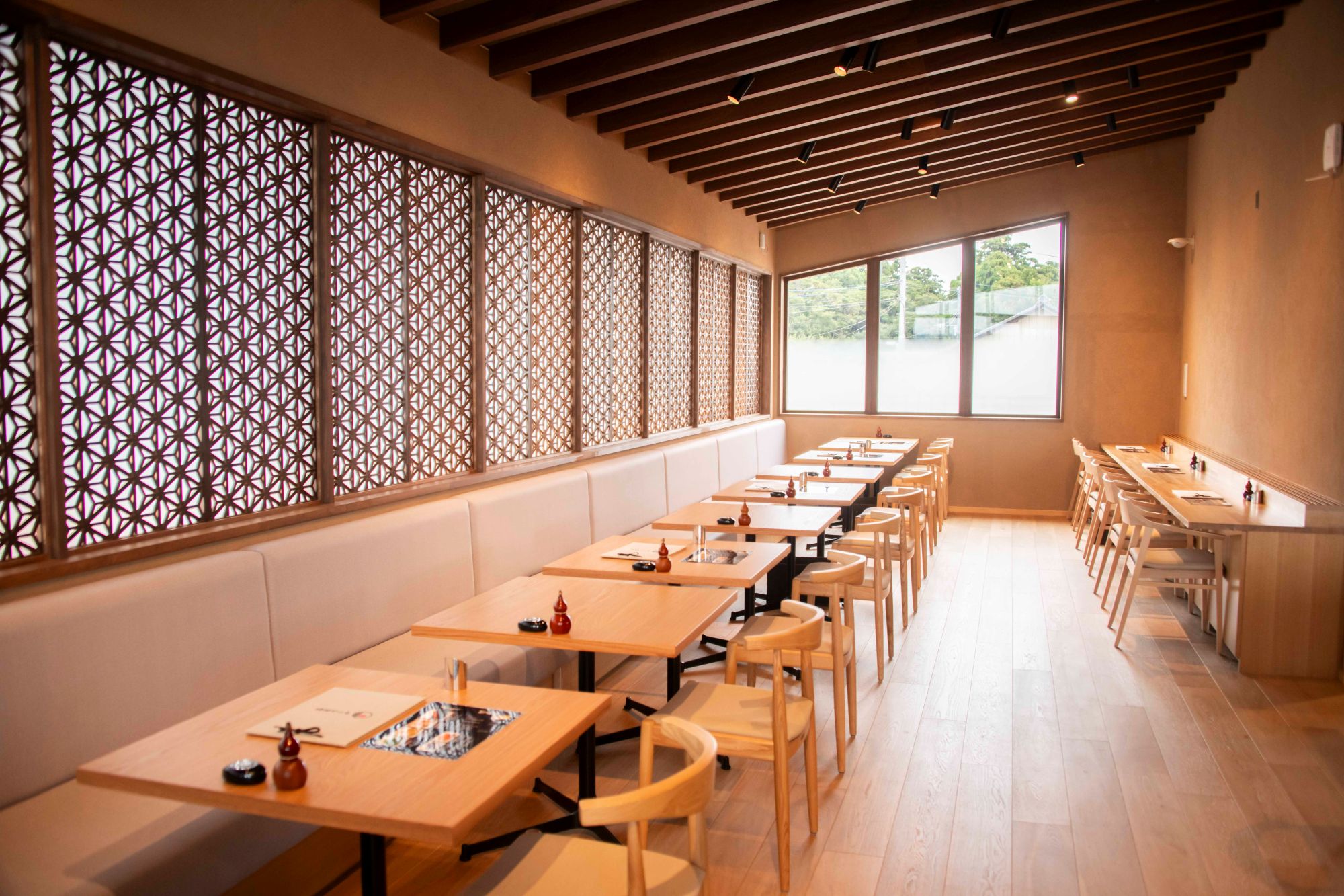 2階にある「ゆうひ食堂」では木の温もりを感じられる屋内だけでなく、一の鳥居と常陸利根川を眺められるテラス席でも食事を食べることができます。