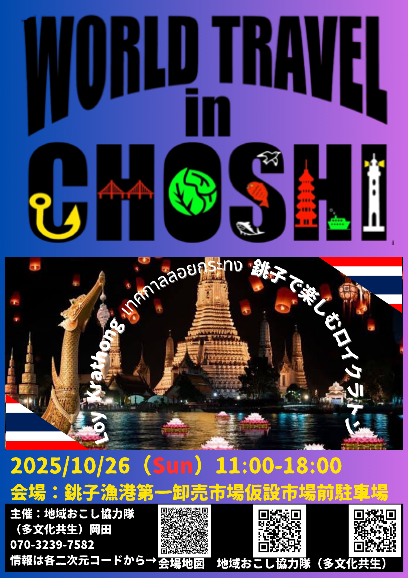 2025年10月26日(日)に、千葉県銚子市の銚子漁港の第一卸売市場仮設市場前駐車場にて多文化共生・国際交流イベント「WORLD TRAVEL in CHOSHI」が開催されます。