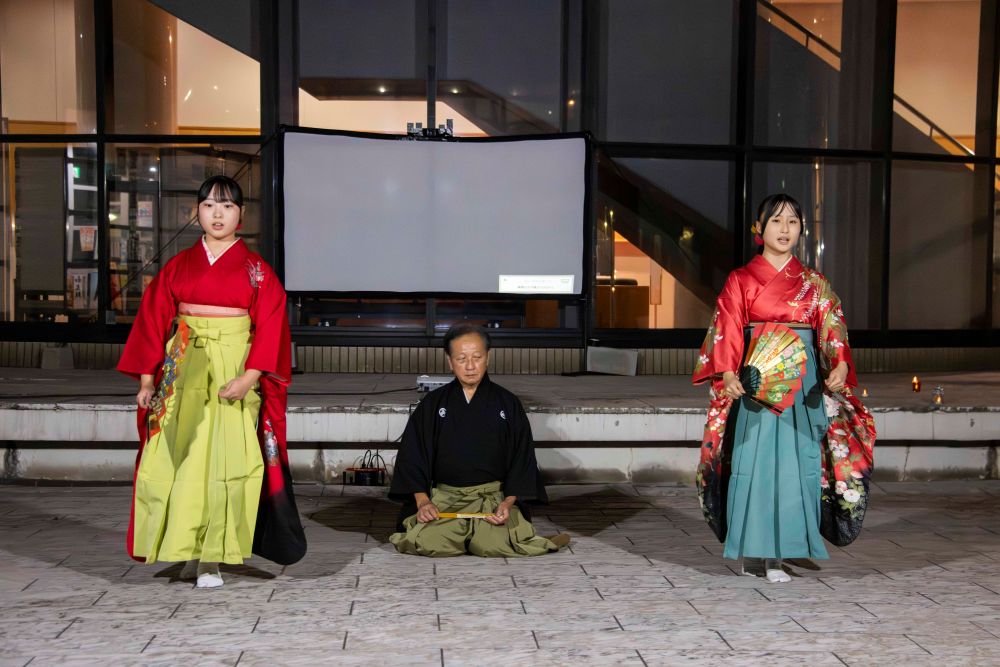 レポートの後編では、フルート・ピアノ・バイオリンによる音楽コンサートと、観世流能楽師・八田 達弥さんによる能「羽衣」の様子をお届けいたします。