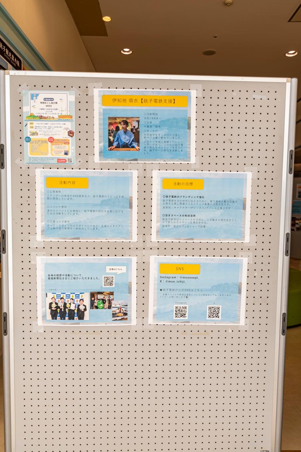 会場では「地域おこし協力隊」の皆さんの活動内容の一部が、パネルで紹介されていました。各メンバーの活動開始時期や出身地、銚子市の「地域おこし協力隊」になったきっかけとともに、活動内容や活動目標が掲示されていました。