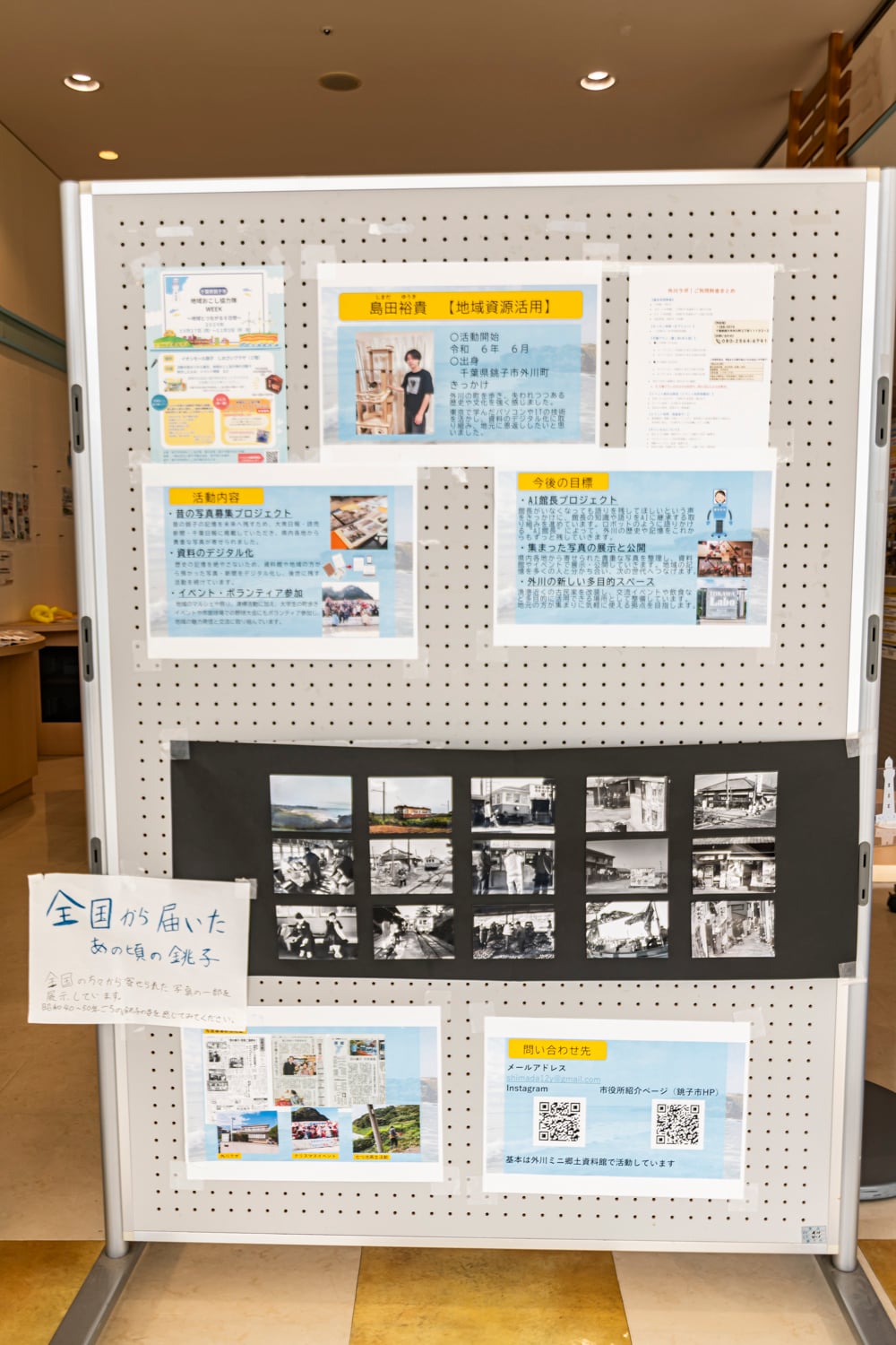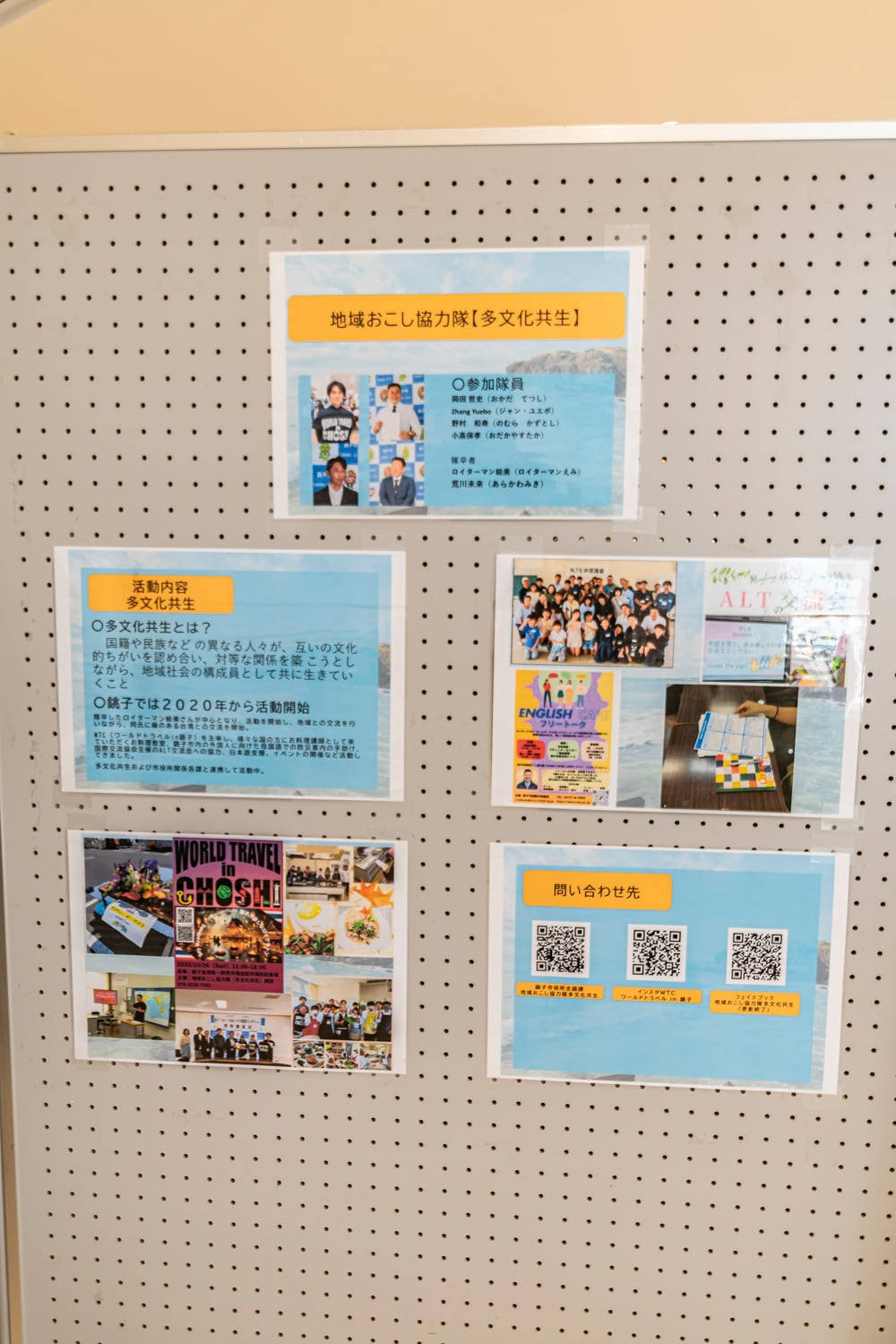 会場では「地域おこし協力隊」の皆さんの活動内容の一部が、パネルで紹介されていました。各メンバーの活動開始時期や出身地、銚子市の「地域おこし協力隊」になったきっかけとともに、活動内容や活動目標が掲示されていました。