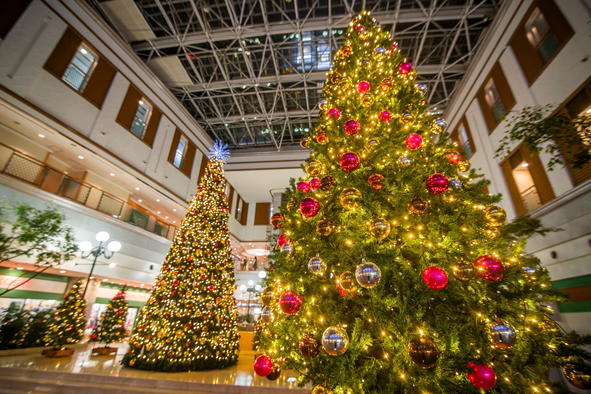 茨城県神栖市の「アートホテル鹿島セントラル」の1階モールエリアに、高さ8メートルの巨大クリスマスツリーが登場。今年も専門造園会社がクリスマスツリーの飾り付けを行い、約1万灯ものシャンパンゴールド色のLEDでライトアップされました。24時間点灯しているので、明るく輝くクリスマスツリーをいつでも見ることができます。