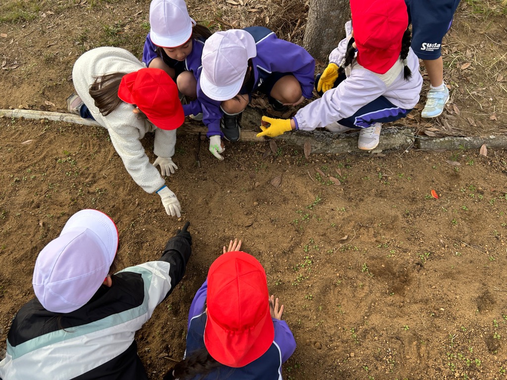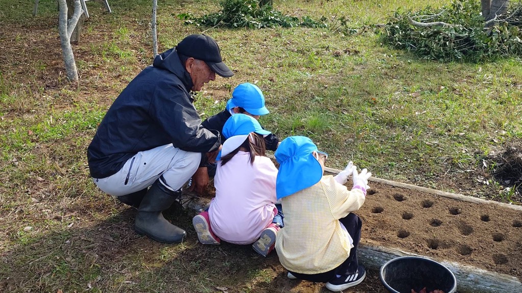 須田幼稚園の園児たちも、球根の植え方を教えてもらいながらチューリップの球根を植えていました。