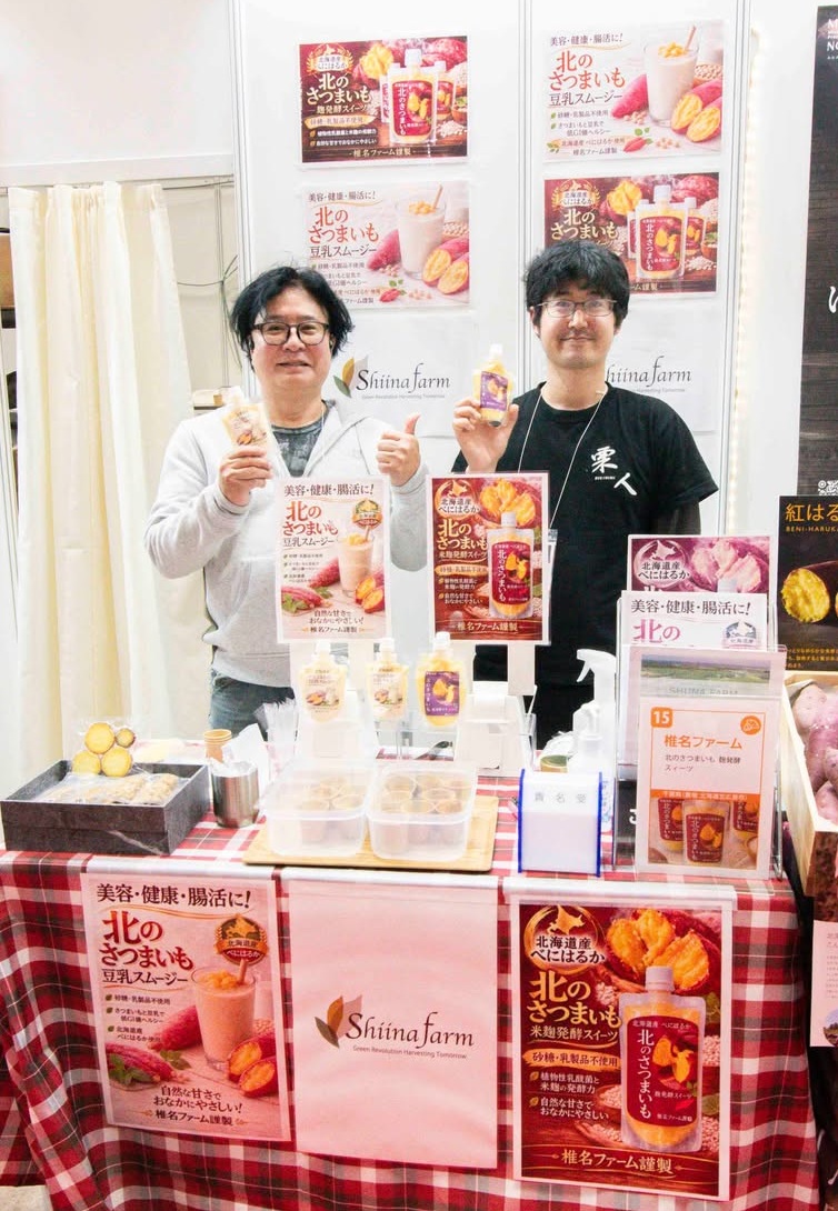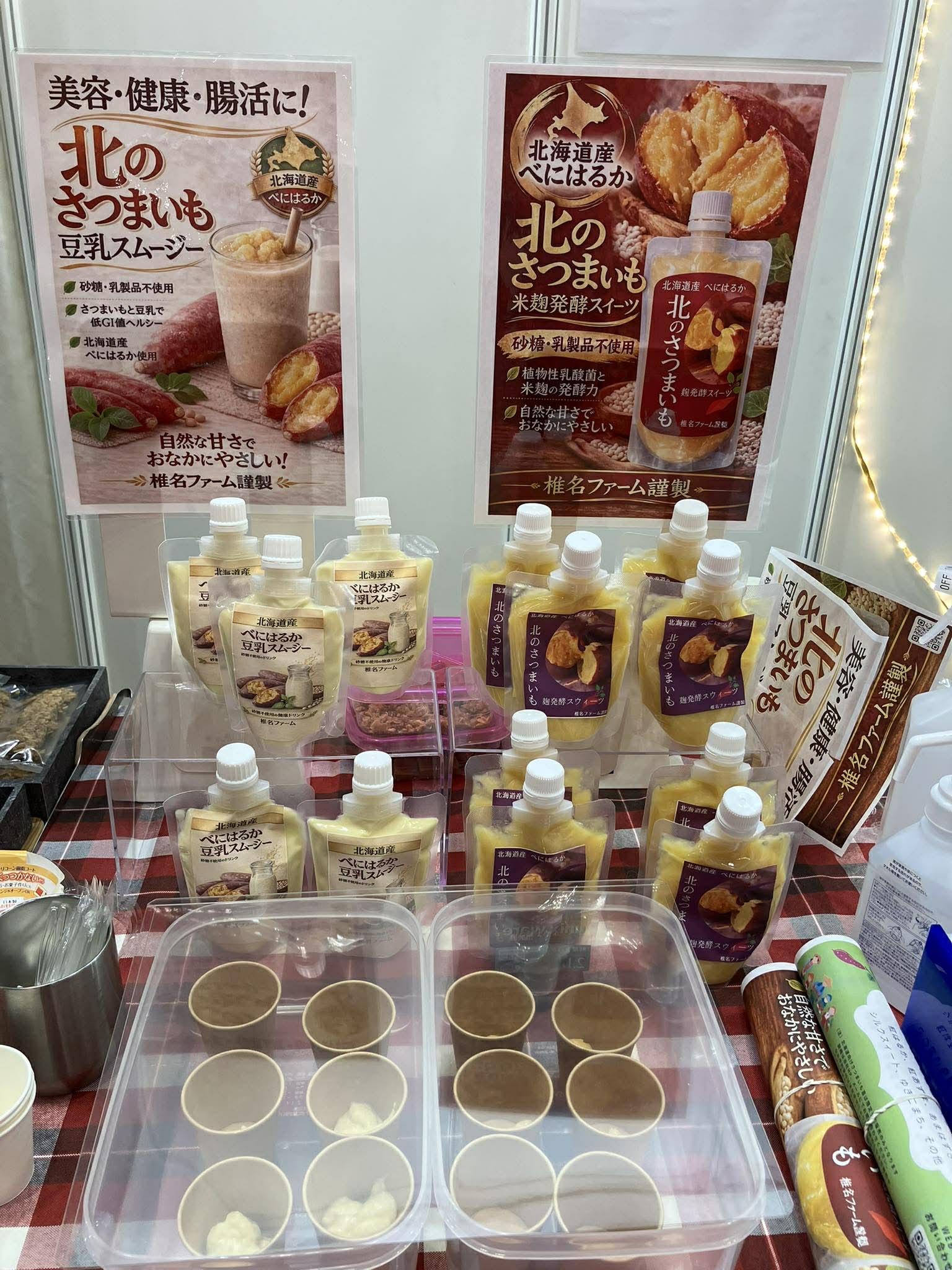 Locotyスタッフが、椎名ファームのブースで紹介していた北海道産のさつまいも「べにはるか」を使った「豆乳スムージー」と「米麹発酵スイーツ」を実際に試食してみました。